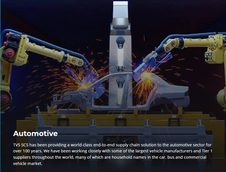 TVS सप्लाय चेन सोल्युशन्स आंतरराष्ट्रीय संस्था, सरकारी विभाग आणि मोठ्या आणि मध्यम आकाराच्या व्यवसायांसाठी पुरवठा साखळी व्यवस्थापन सेवा प्रदान करते.
